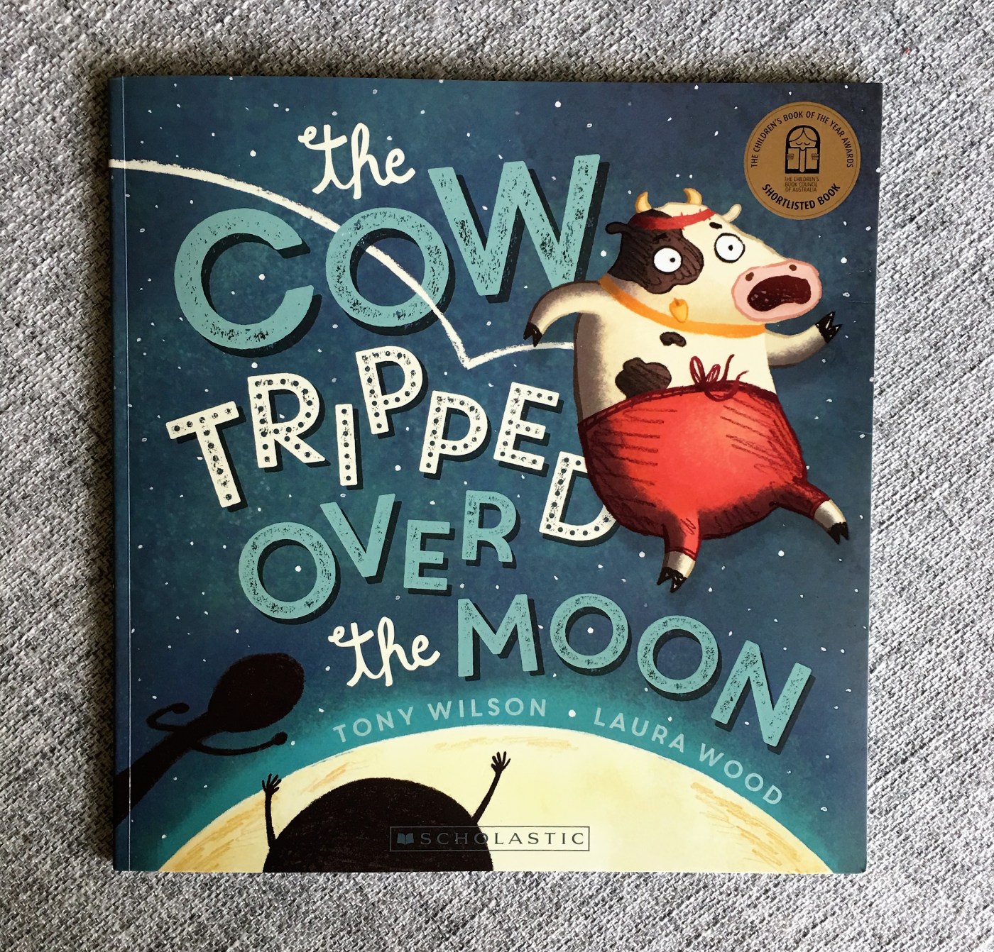 This years book is The Cow Tripped Over the Moon by Tony Wilson and Laura Wood.  It is such a fun story, and in celebration of NSS I thought I would share my thoughts on this book.