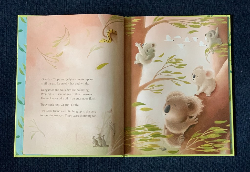 I like the use of words like brave and explain what the carers do to get the koala’s to be healthy and well again. Sophie doesn’t shy away from explaining that Tippy has burns, but they also show that she heals from them.