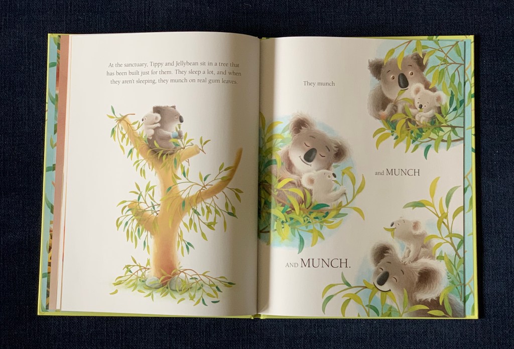 This book is inspired by real koalas Tippy and Jellybean, and in the rear of the book, there are two photos of them and the opportunity to find out more information about helping the koalas through a web link.